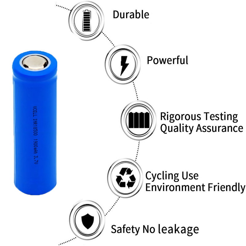 1.VCELL POWER 3.7v 1900mAh INR18500 lithium ion battery uses lithium nickel manganese cobalt oxide material, which has high energy density and long battery life.